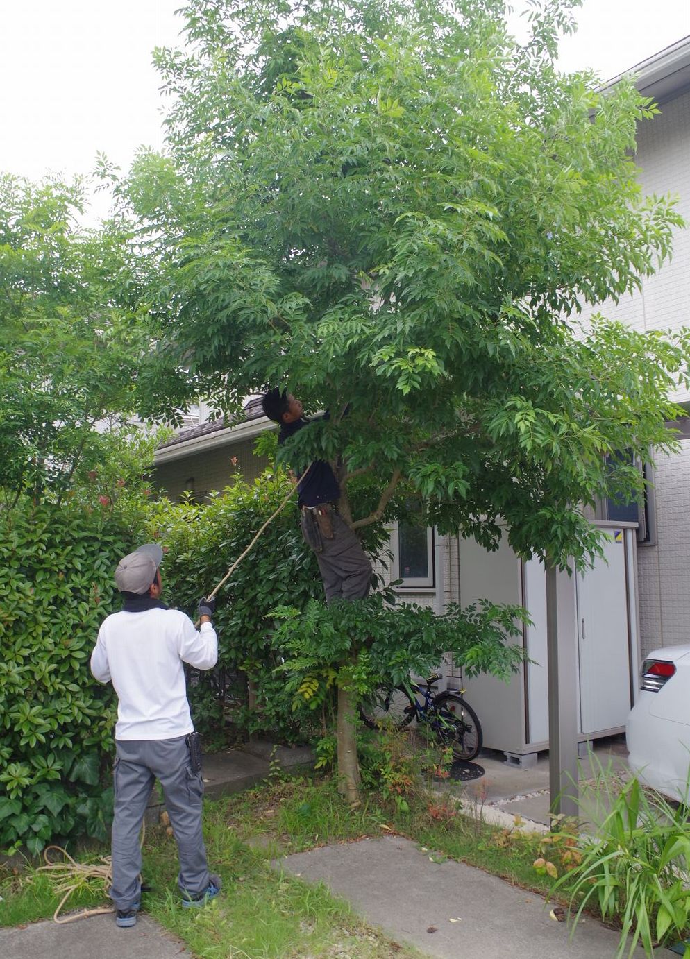 今回は株立ちの1本を残して、カーポートの邪魔になる