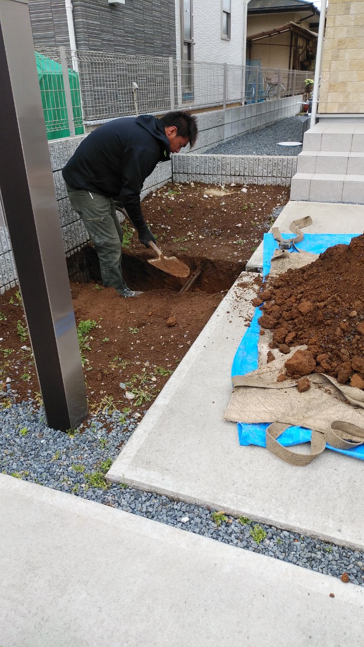 一度、砂利をめくって掘っていきますよーー💪